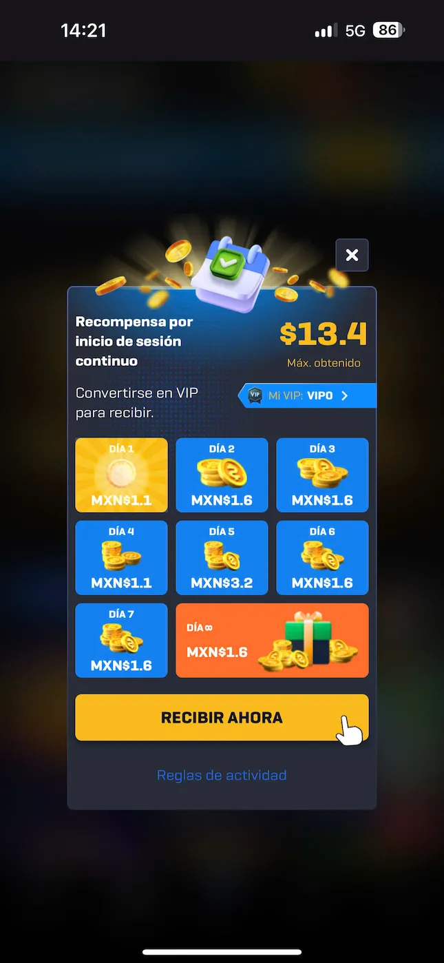 Bono de bienvenida, giros gratis, recargas diarias, promociones especiales en deportes y un exclusivo club VIP.